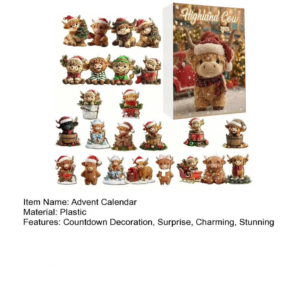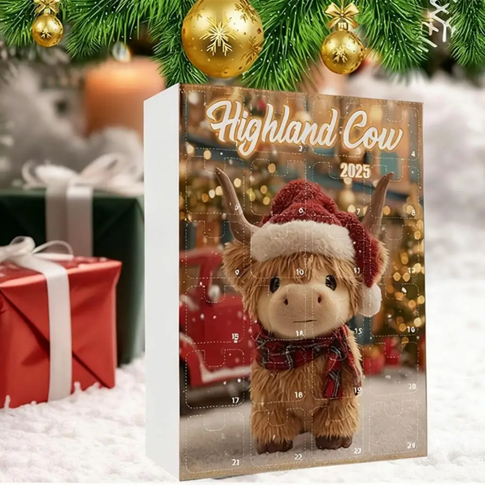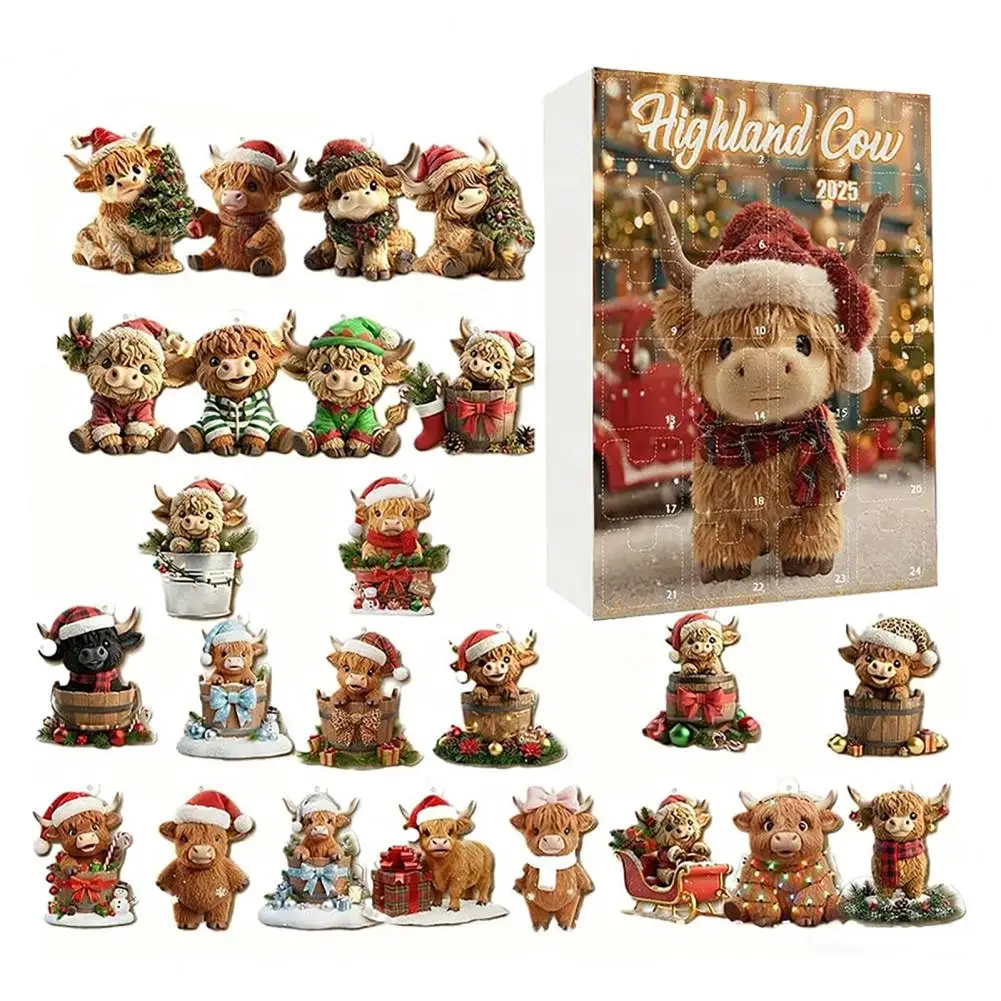 2025 Advent Calendar Highland Cow Highland Cow Santa Hat Decoration Highland Cow Advent Calendar 2025 Festive Christmas for Tree