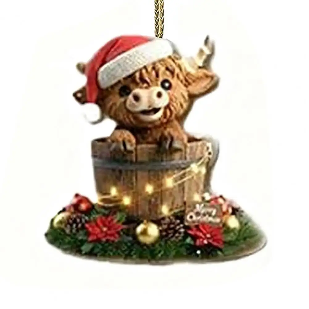 features a lovable highland cow wearing a santa hat for a festive touch.